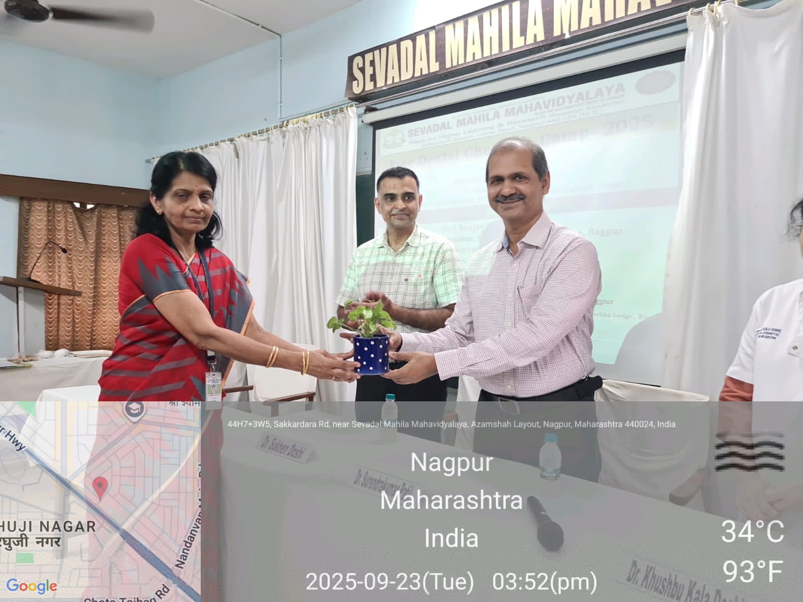 The off.Principal Dr Mrs N. S. Dhobale Mam welcoming the chief guest Dr Surendra Patil